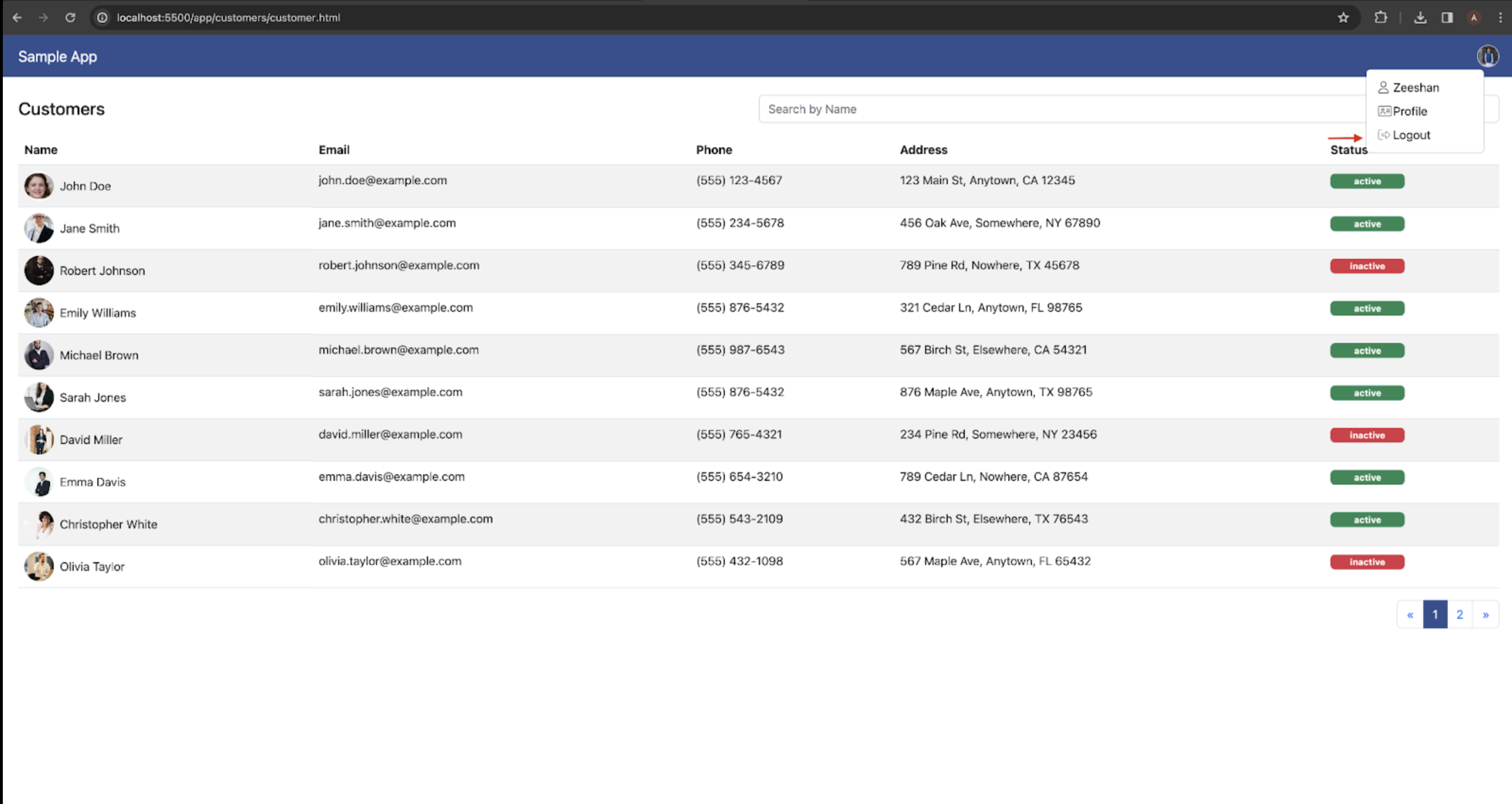 Upon selecting the logout option, the system redirects users to the login page and clears the local storage as a security measure.